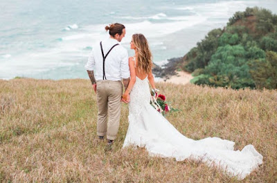 The couple said their vows in front of 100 guests in a field overlooking the ocean. Sadly, nobody from ‘The Hills’ was on the guest list. The big day was planned by Moana Events and was boho inspired with an island feel. Audrina wore a lace wedding dress by Pallas Haute Couture. The couple have been together for 8 years and are parents to a five month old daughter, Kirra. Photos by Jana Dillon Photography.